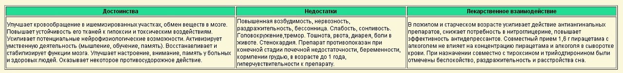 Особенностью пирацетама, является то, что его фармакологическое действие проявляется только в условиях длительного повторного введение препарата в достаточно высоких дозах.